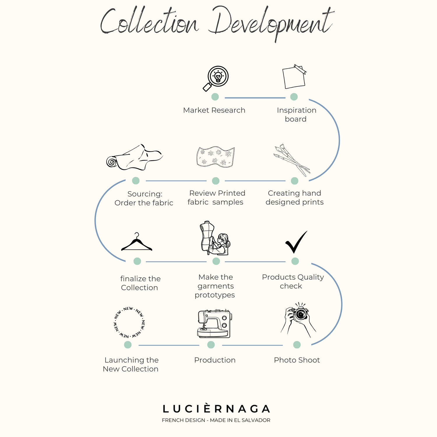 Our Collection development involves strategic planning, designing, and producing a cohesive range of beachwear that embody LUCIÈRNAGA's brand identity. Here are the essential steps in our process