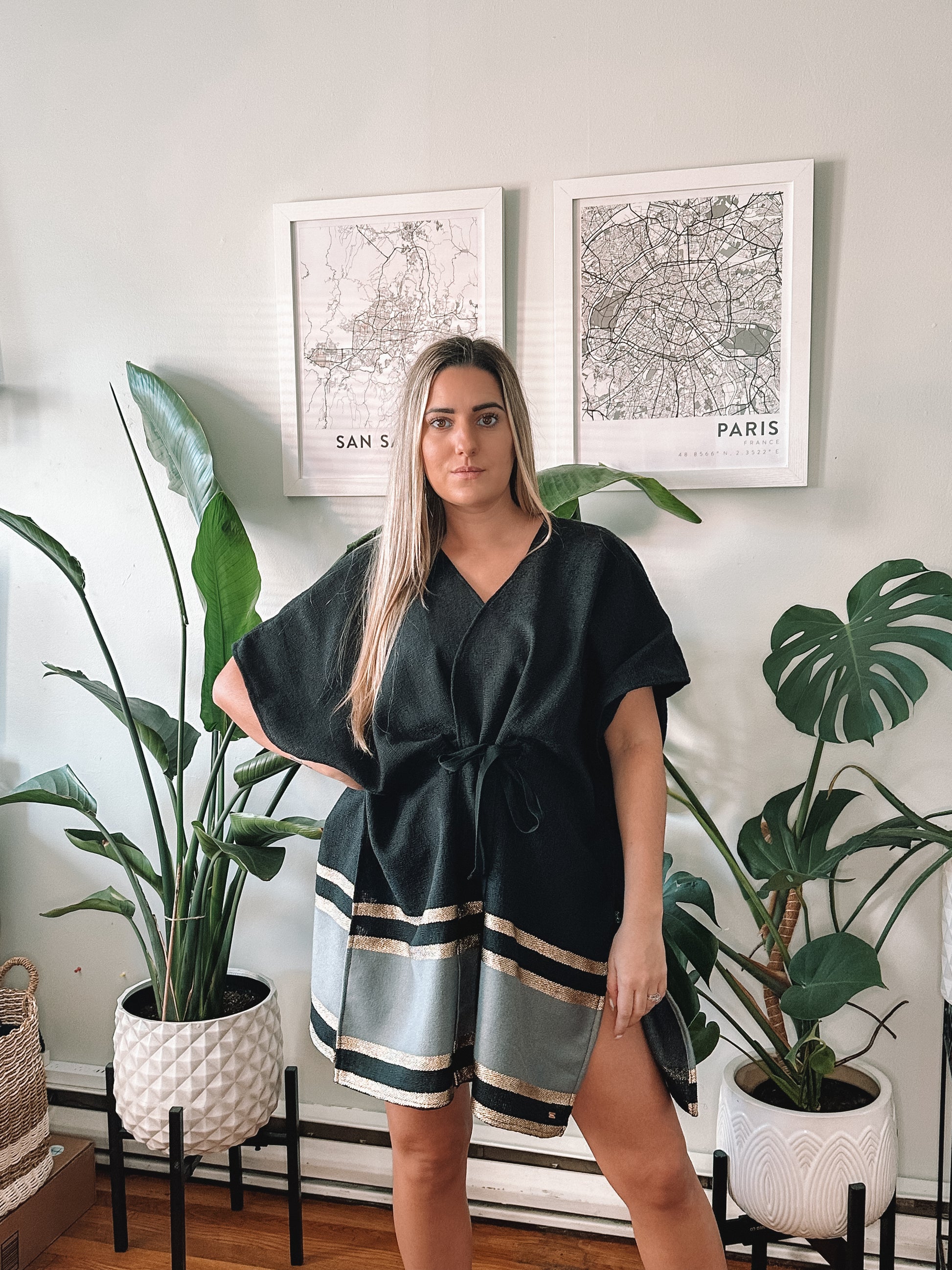 With its flowing silhouette and wide sleeves, our Woven cover-up offers both comfort and style, perfect for lounging at home or making a statement at special events. The luxurious fabric drapes beautifully, while the adjustable tie waist ensures a flattering fit for every body shape